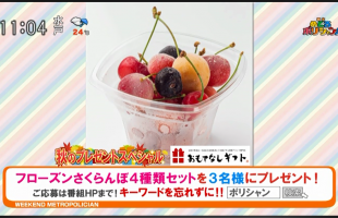 本日、当園の「冷凍さくらんぼ・月山錦スペシャル」がTV番組、ヒルナンデスで紹介さ…