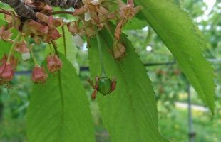 現在のさくらんぼの様子です。 花が散り、やっと小さな実が付き出しました。 こちら…